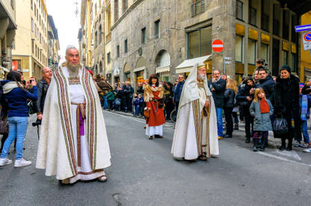 Florence, Italy - January 6, 2013: Epiphany, the feast of Christian holidays, and churches celebrate with a grand parade in magnificent costumes of various medieval characters.