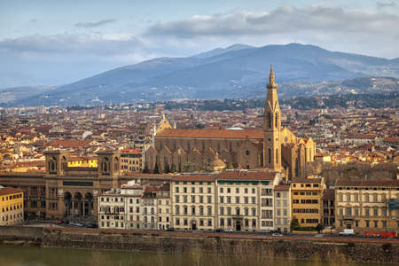 Cityscape of Florence. Basilica di Santa Croce are visible in distance.