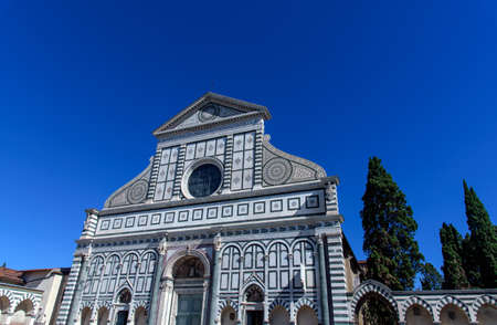 Facade of Basilica of San Miniato al Monte (St. Minias on the Mountain) in Florence, Italy.