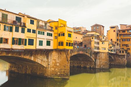 Moody day cityscape in Florence, Italy, bridge over Arno river.