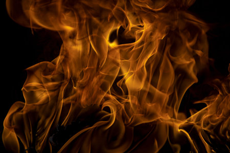 Fire flame texture. Burning material backdrop. Burn effect pattern. Blaze and torch wallpaper. Heat and haze backdrop. Exploison and hot background.
