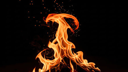 Abstract swirling flames with sparks on black background