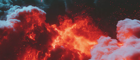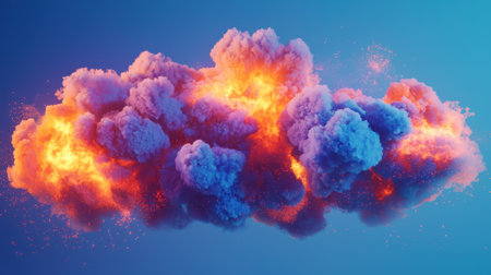 Explosive fire burst with vibrant colors against dark background showcasing energy and chaos