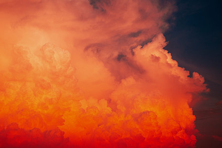 Explore a stunning cloudscape filled with vibrant red and orange hues that create a dramatic atmosphere in the sky. This image captures the raw beauty of nature.