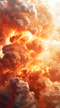 A breathtaking explosion showcasing vibrant flames and thick smoke against a dramatic sky. This image captures the raw energy and intensity of a powerful event, perfect for conveying feelings of chaos and danger.