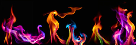 Colorful flames dancing against a black background. generated by ai
