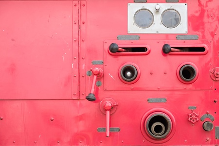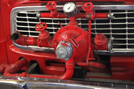 Detail with heavy duty water hoses on top of a firefighter vehicle
