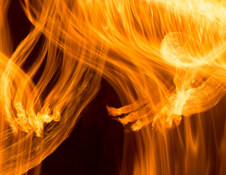 Captivate your audience with this stunning image of swirling fire flames against a dark background, showcasing vibrant colors and dynamic movement in a visually striking design.