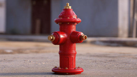 A vibrant red fire hydrant stands prominently on an urban street, blending functionality with aesthetic appeal. Ideal for emergency service and safety themes.