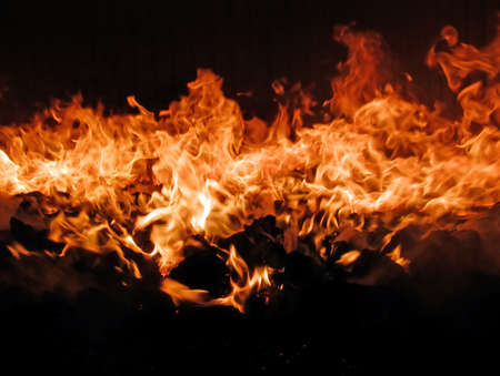Fire flames on black background. Abstract blaze fire flame texture background.