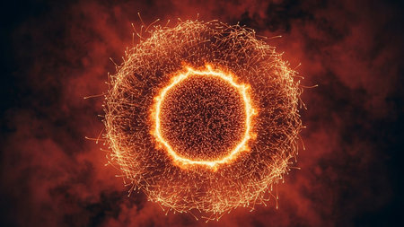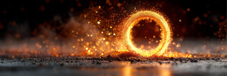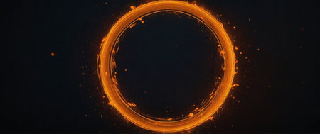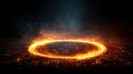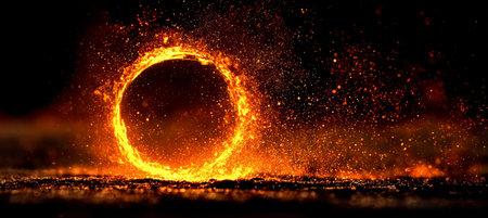 Dynamic Fiery Circle of Light with Sparks and Dark Particles, Creating Energetic Abstract Effects
