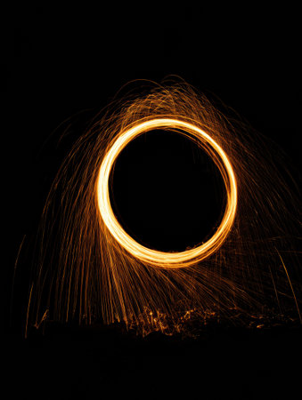 Spectacular Explosion of Colorful Fire Sparks Creating a Mesmerizing Ring of Light in the Dark