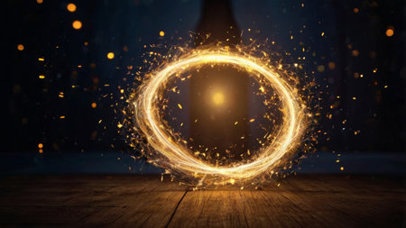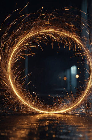 An enchanting glowing circle of light surrounded by dazzling sparkles creates a captivating visual effect against a dark background.