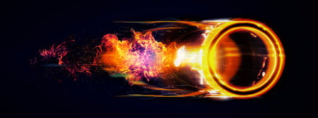 Fiery ring on dark background, computer generated abstract background, 3D rendering