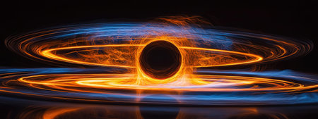 Glowing particle rings surround dark voids inspired by black hole phenomena