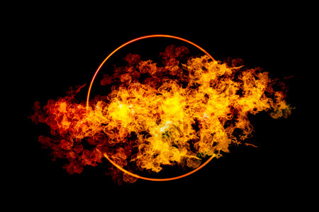 Circular frame of burning flames on black background, fire forms a perfect circle shape