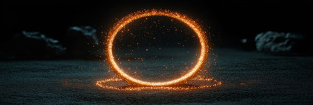 Mystical Fiery Portal A Shimmering Ring of Fire in Dark Space, Evoking Magic and Adventure Themes.
