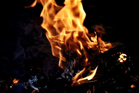 Fire flames on black background. Blaze fire flame texture. Fire flame with copy space. Blaze fire flame textured background. Flames on black background.