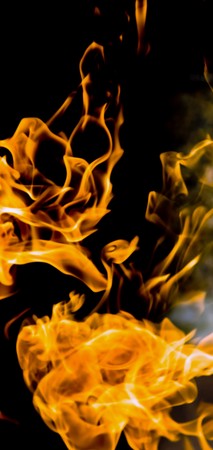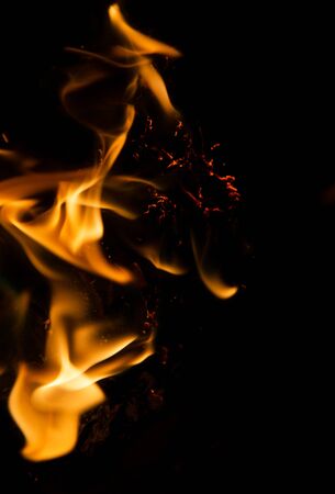 Fire flames on black background. Closeup of fire flames isolated on black background.