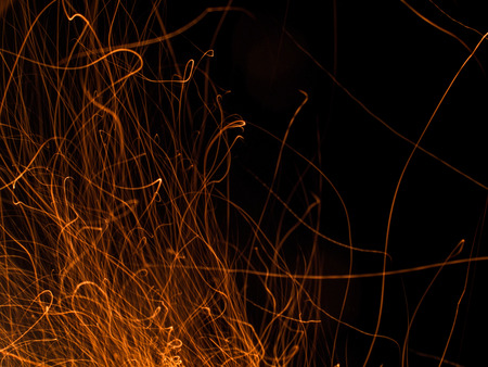 close up of sparks from fire, sparks on black background, extravaganza of fire, magic with sparks. 2020