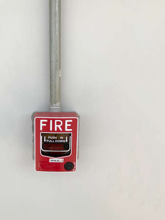 Honeywell Notifier Fire Alarm Handle Pull switch on the white wall as background for emergency case at the new factory building