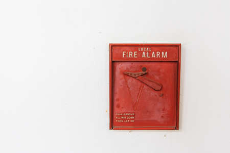 Fire alarm, Active fire protection, Fire Call Point Button, Fire alarm. Fire alarm panel on white wall, Red fire alarm isolated on background