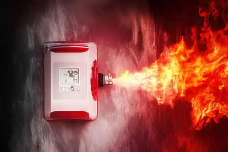 A fire extinguisher emits a striking display emphasizing the importance of fire safety.