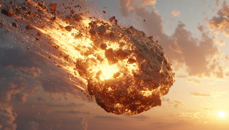 3D illustration of a meteorite in the sky at sunset.