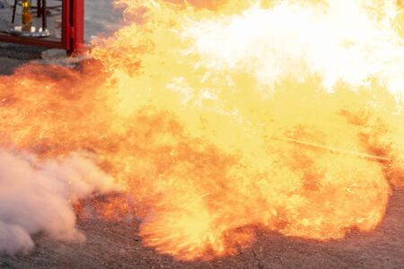 Close-up shot of a burst of flames in a controlled explosion