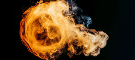 Fiery Smoke Plume on Black Abstract Art and Design Element With a Dark Background, Isolated.