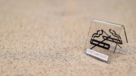 no smoking sign with shopping place background on wooden table