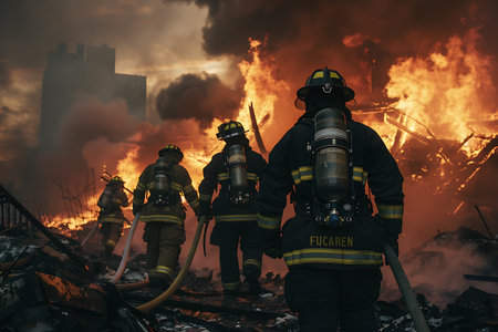 Firefighters fighting fire, Firefighters training