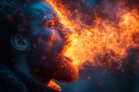 Profile of a Man Emerging From Fire, a Conceptual Image of Power, Determination, and Resilience
