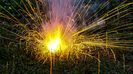 sparkler on a dark background, sparks fly in the air