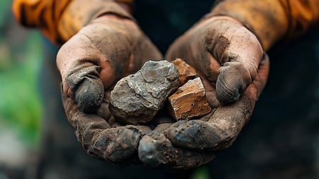 Freshly excavated coal held hands miner illustrating hard work and grit associated coal extraction. miner’s hands are covered coal dust emphasizing labor involved.