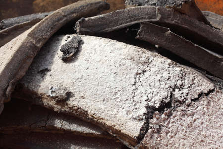 A captivating image of a pile of broken ceramic tiles resting on a light background, showcasing texture and color variations perfect for design and renovation projects.