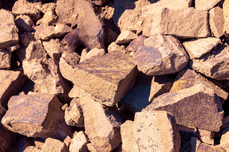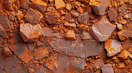 Vibrant Orange and Brown Rock Fragments Forming a Textured Surface in a Natural Setting During Daylight Hours. Generative AI
