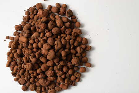 Expanded clay insulation isolated on white for transplant plant