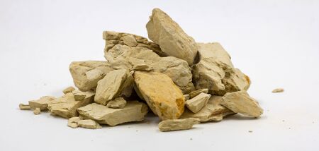 Scientific Close-up of Pale Beige Sedimentary Rock Fragments: Raw Material for Ceramic Production and Detoxification Products.
