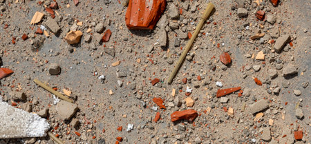 Construction waste close up. Broken bricks, demolition debris, and destruction fragments and rubbish