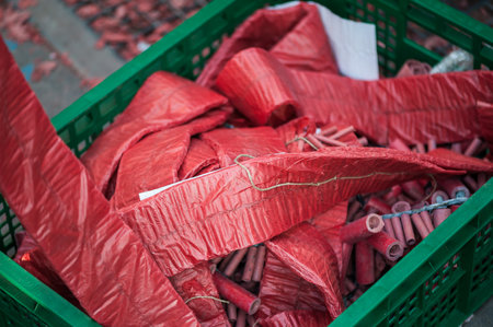 The shatters of fire crackers after chinese new years celebrating day