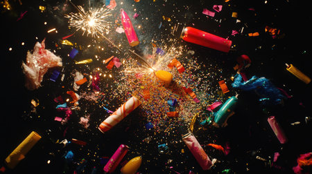 This vibrant image captures a lively celebration scene filled with fun confetti, sparklers, and party decorations, perfect for joyful events and festivities.