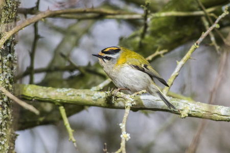 Goldcrest, Regulus regulorum, single bird on branch, Warwickshire
