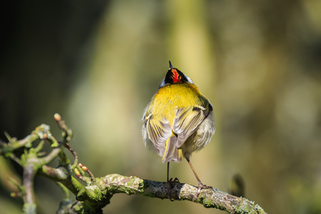 Red-crested Kinglet (Regulus regulorum) on a branch