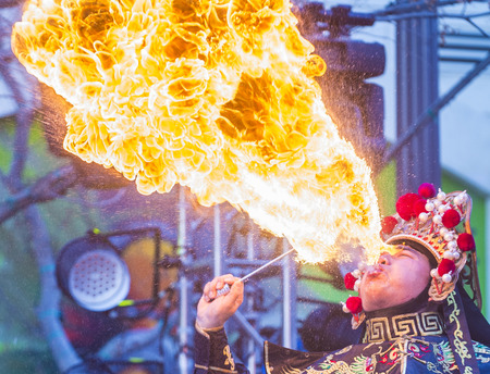 LAS VEGAS - FEB 21 : Chinese master of masks perform at the Chinese New Year celebrations held in Las Vegas , Nevada on February 21 2015