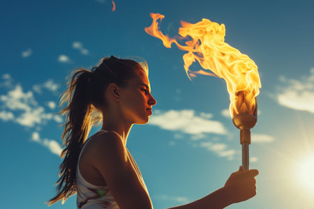 Woman athlete with the Olympic flame.