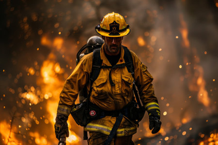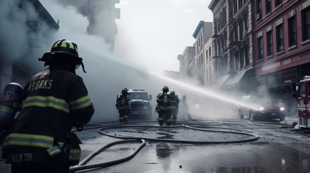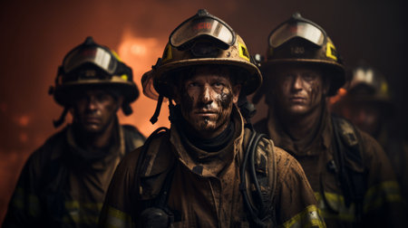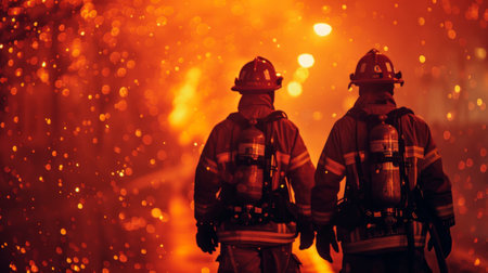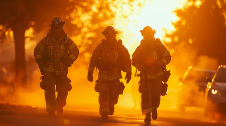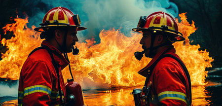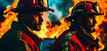 911. Firefighters at work against the backdrop of a raging flame. Emotive pictures highlighting the teamwork and unity among firefighters as they work together to overcome fire-related challenges.