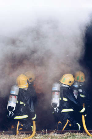 Firefighters fighting fire, Firefighters training