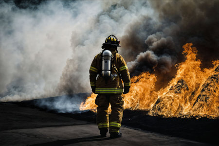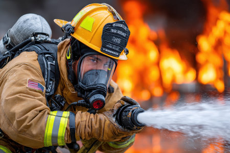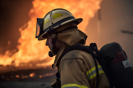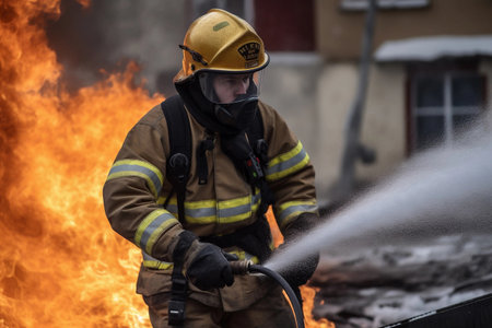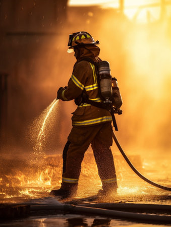 Firefighter extinguishes fire : Generative AI
