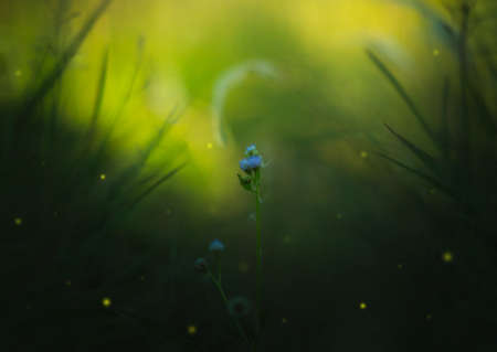 Background nature firefly flying in forest at dusk, Prachin Buri, Thailand